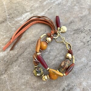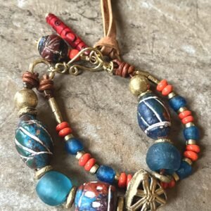 Tribal beads, also known as ethnic or trade beads, are commonly made from recycled and natural materials like bone, brass, clay, glass, resin, fabric, etc.