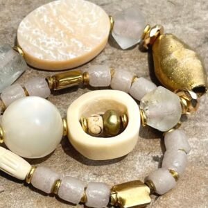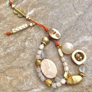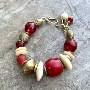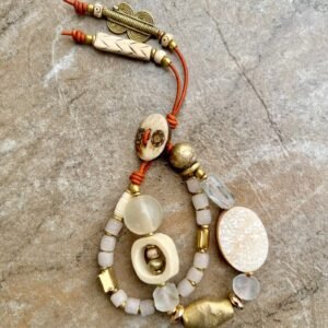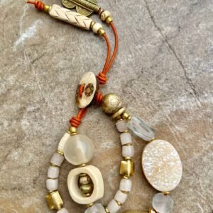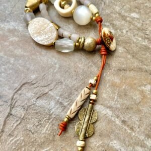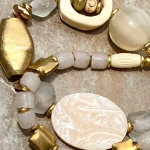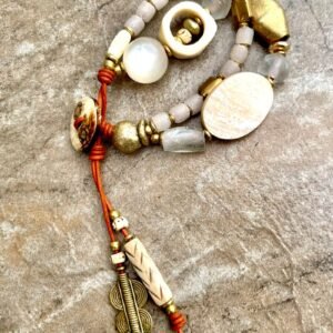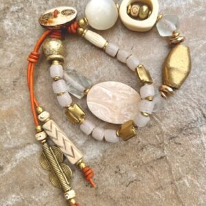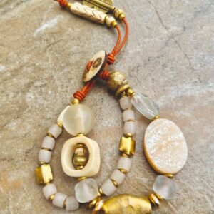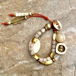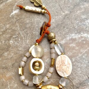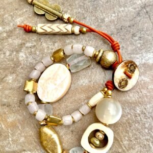 Bohemian Bracelet MOP, African Bone, Glass, Brass, and Vintage Resin