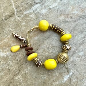 Tribal beads, also known as ethnic or trade beads, are commonly made from recycled and natural materials like bone, brass, clay, glass, resin, fabric, etc.