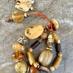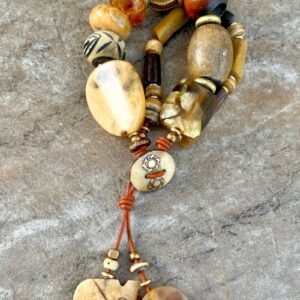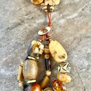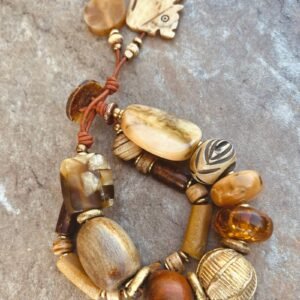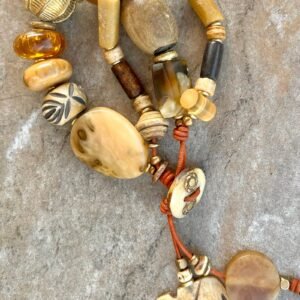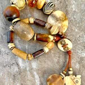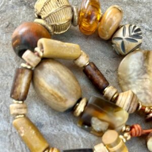 Tribal beads, also known as ethnic or trade beads, are commonly made from recycled and natural materials like bone, brass, clay, glass, resin, fabric, etc.