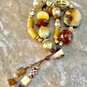 Tribal beads, also known as ethnic or trade beads, are commonly made from recycled and natural materials like bone, brass, clay, glass, resin, fabric, etc.