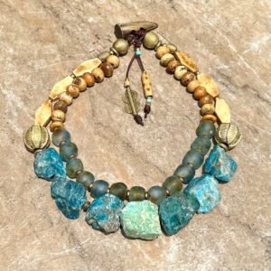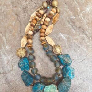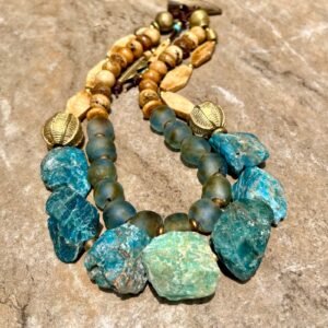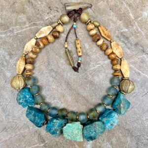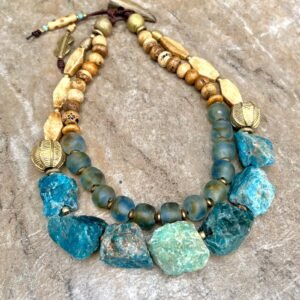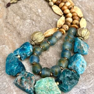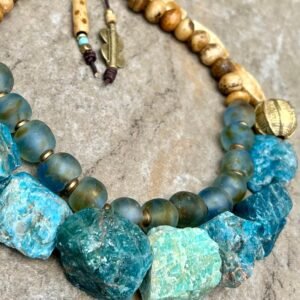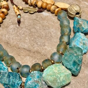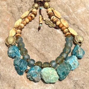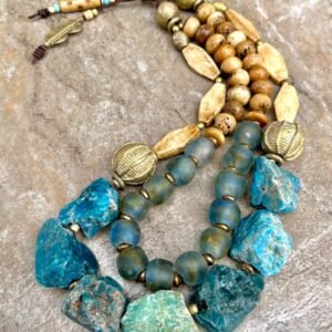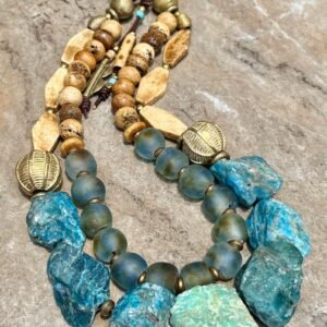 Bohemian Choker Chunky Aqua Blue Apatite, Amazonite and African Tribal Beads