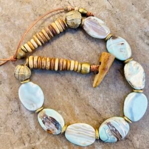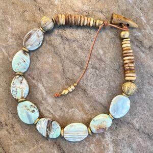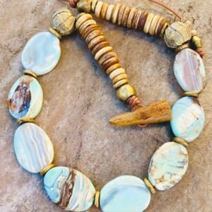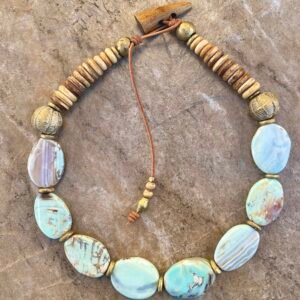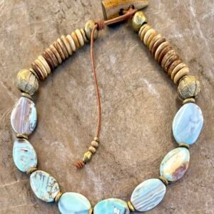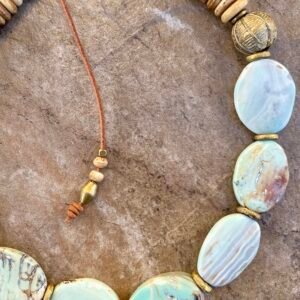 Bohemian Necklace Sky Blue Dragon Skin Agate and African Tribal Brass