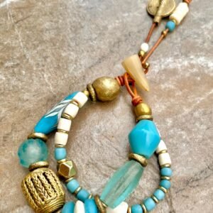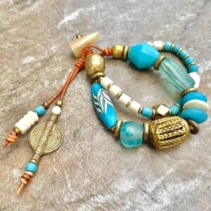 Boho Bracelet African Tribal Beads, Sea Glass and Vintage Resin