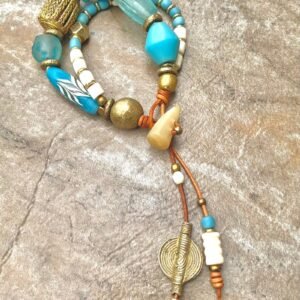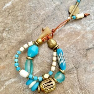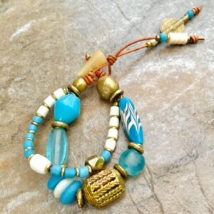 Tribal beads, also known as ethnic or trade beads, are commonly made from recycled and natural materials like bone, brass, clay, glass, resin, fabric, etc.
