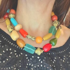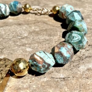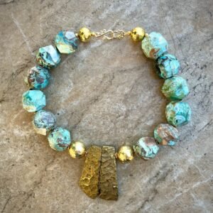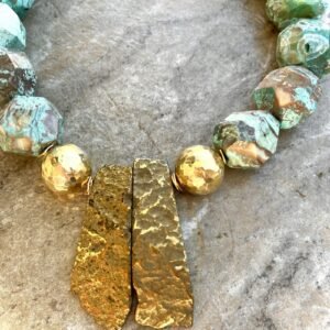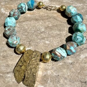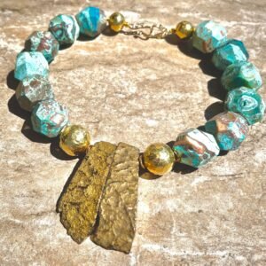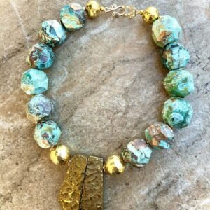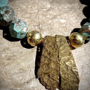 Boho Chic Blue Ocean Jasper and African Brass Statement Necklace