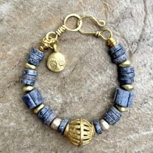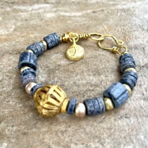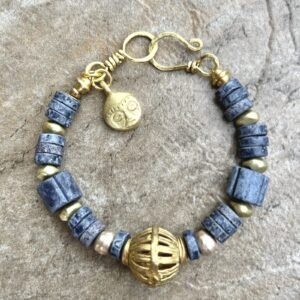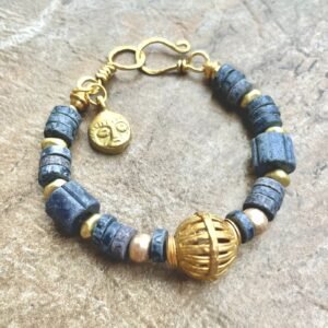 Boho Chic Bracelet Greek Handmade Ceramic Tribal African Brass Ghana Ethnic Mask