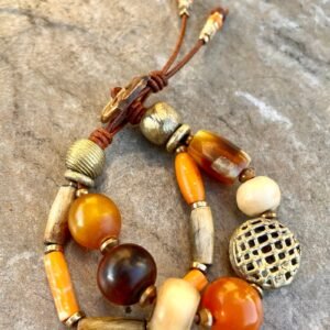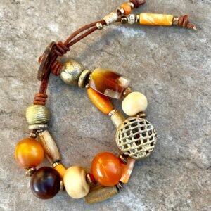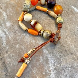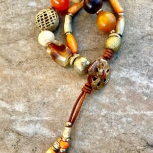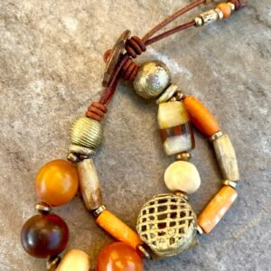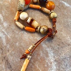 Tribal beads, also known as ethnic or trade beads, are commonly made from recycled and natural materials like bone, brass, clay, glass, resin, fabric, etc.