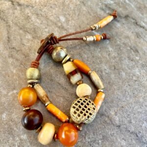 Boho Chic Copal, Resin and African Tribal Beads Bracelet