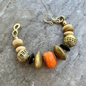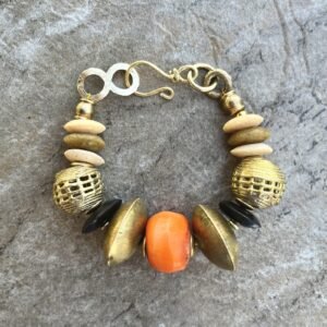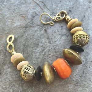 Boho Tribal Bracelet Kenya Coral Bone Ashanti Glass Trade Brass Africa