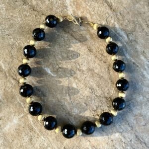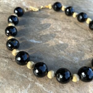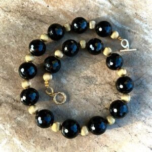 Classic Chic Necklace Black Agate and Vintage Italian Gold Filled Brushed Beads