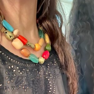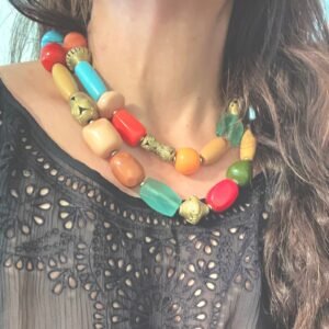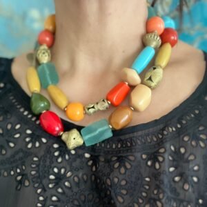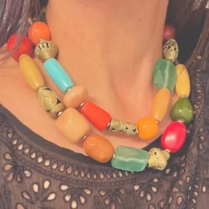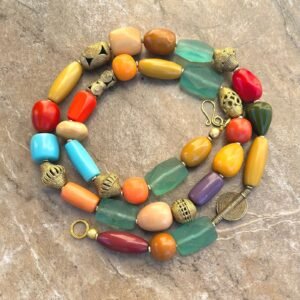 Colorful Statement Necklace Vintage Resin, Glass and African Brass