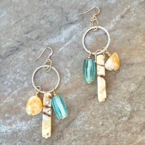Designed with a free spirit in mind, the earrings showcase a rustic yet sophisticated look. Their organic shapes and harmonious color palette ensure they stand out while blending seamlessly with casual or special occasions. Measuring approximately 3 inches long, they strike the perfect balance between bold presence and lightweight wearability. Whether paired with a flowy summer dress or classic evening attire, they effortlessly elevate your wardrobe.