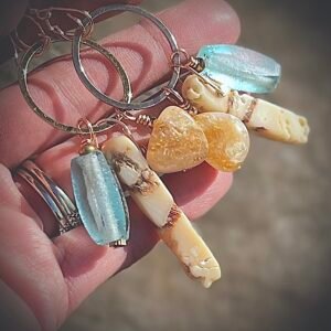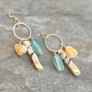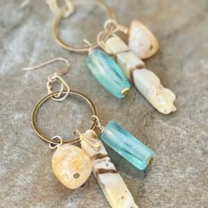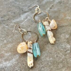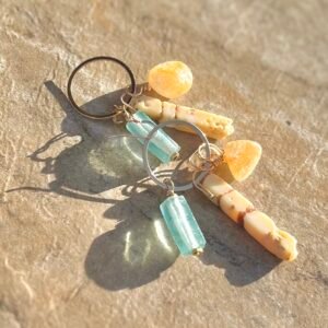 Introducing our exquisite handmade earrings, thoughtfully designed to bring a touch of natural elegance to your style. Featuring Coral bamboo, Citrine gemstone, and sea glass, these earrings are a celebration of nature’s beauty.