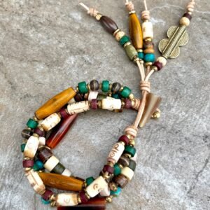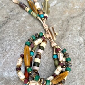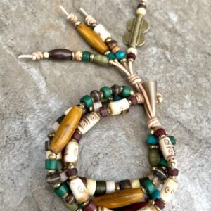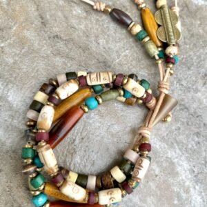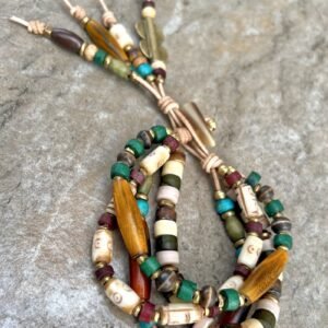 Tribal beads, also known as ethnic or trade beads, are commonly made from recycled and natural materials like bone, brass, clay, glass, resin, fabric, etc.