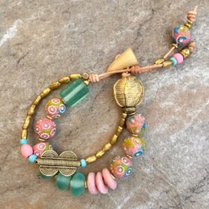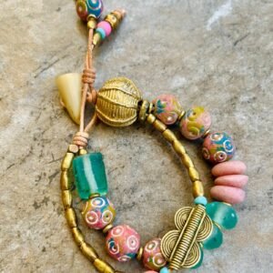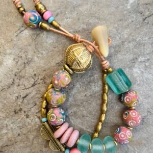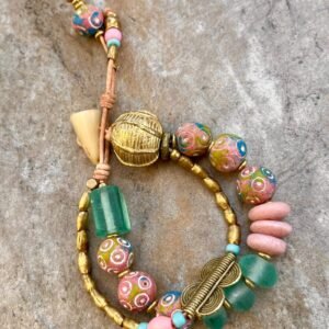 Tribal beads, also known as ethnic or trade beads, are commonly made from recycled and natural materials like bone, brass, clay, glass, resin, fabric, etc.