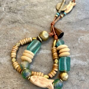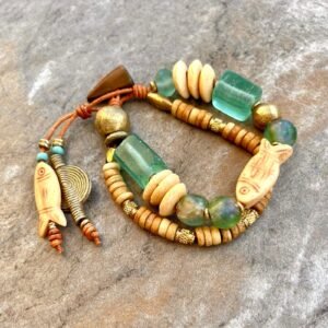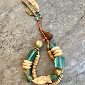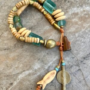 The bracelet features exquisite beads made of recycled glass, brass, and carved bone that are carefully crafted by African tribal artisans to give an ethnic and rustic look.