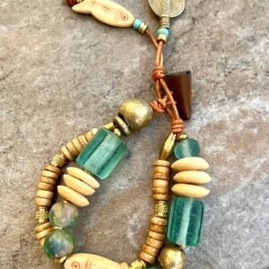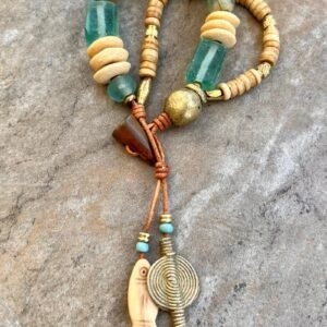 Tribal beads, also known as ethnic or trade beads, are commonly made from recycled and natural materials like bone, brass, clay, glass, resin, fabric, etc.