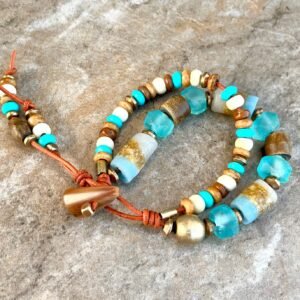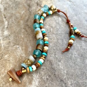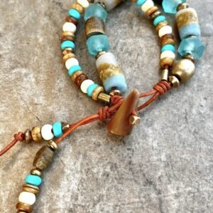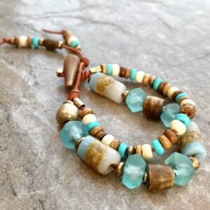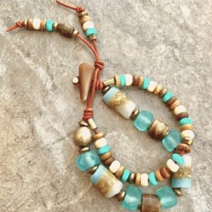 Hippie Chic Bracelet African Tribal Recycled Glass, Bone, Horn and Brass
