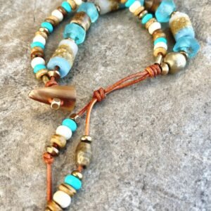 Tribal beads, also known as ethnic or trade beads, are commonly made from recycled and natural materials like bone, brass, clay, glass, resin, fabric, etc.