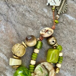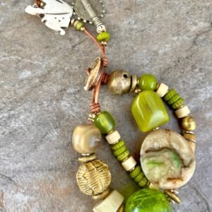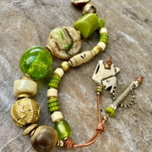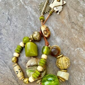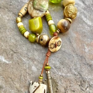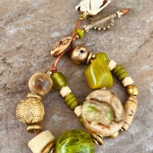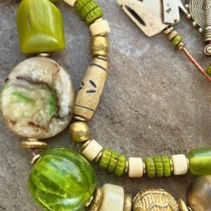 Lime Boho Bracelet African Tribal Beads and Vintage Resin