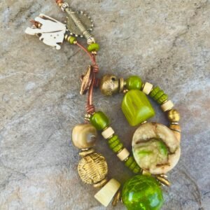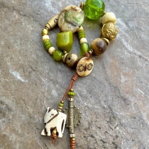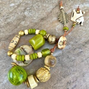 Tribal beads, also known as ethnic or trade beads, are commonly made from recycled and natural materials like bone, brass, clay, glass, resin, fabric, etc.