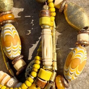 Because of the rustic manufacturing, African beads have irregularities in shape, size and color, which makes every piece “perfectly imperfect” and with a particular irresistible beauty in the eyes of those who value the art embodied on them.
