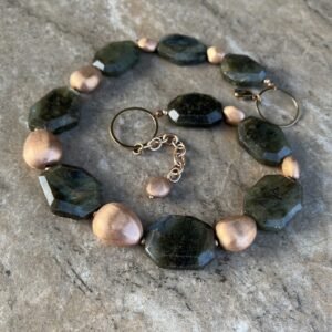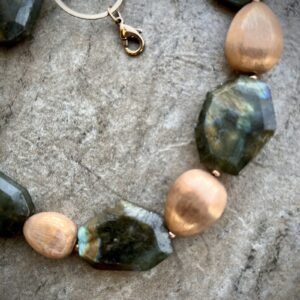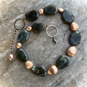 Rustic Chic Labradorite Gemstone and Italian Rose Gold Filled Necklace