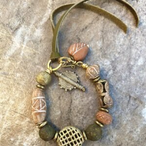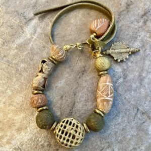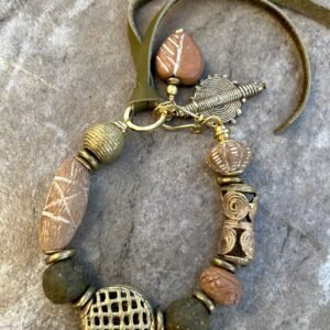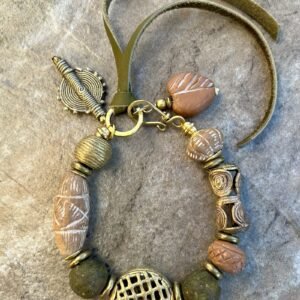Tribal Bohemian Bracelet African Ethnic Clay, Brass and Recycled Glass