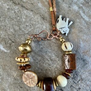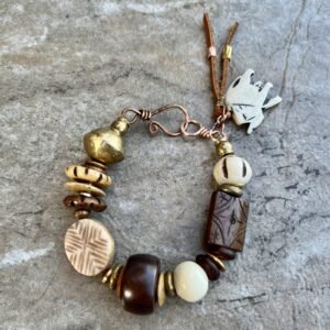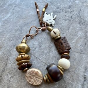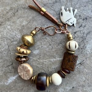Tribal Bohemian Bracelet Water Buffalo Bone and African Ethnic Brass