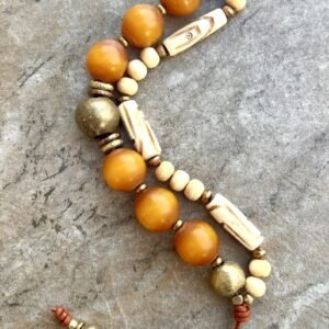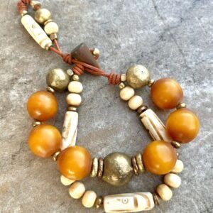 Copal is a fossilized organic resin. This amorphous yellow to brownish material is often confused with amber, but amber is much older than copal.