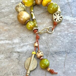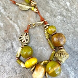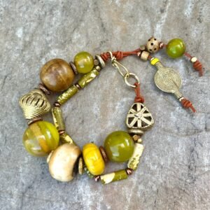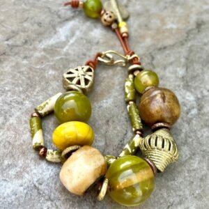 Tribal Boho Bracelet African Bone, Horn, Brass and Vintage Resin Beads