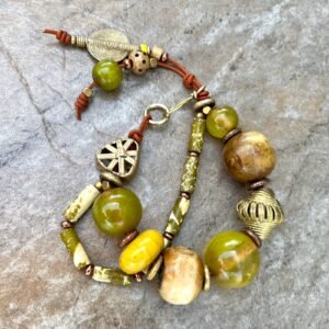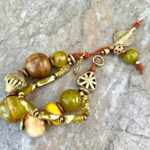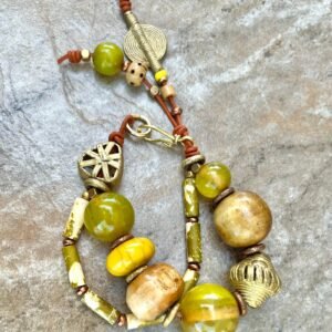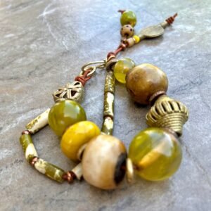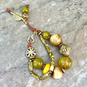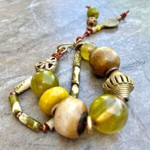 Tribal beads, also known as ethnic or trade beads, are commonly made from recycled and natural materials like bone, brass, clay, glass, resin, fabric, etc.