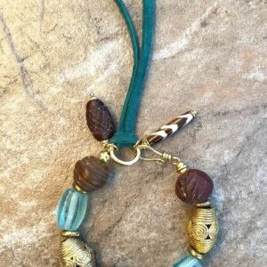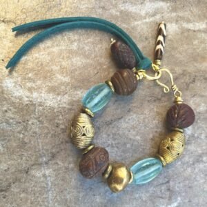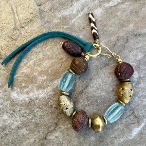 Tribal Boho Bracelet African Ethnic Clay, Brass and Recycled Glass