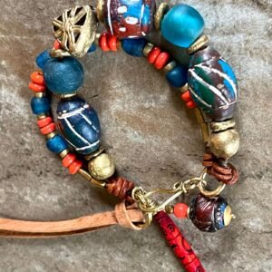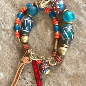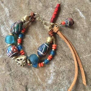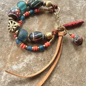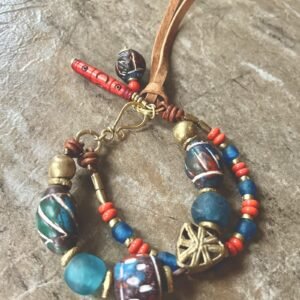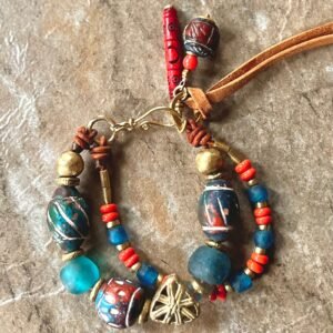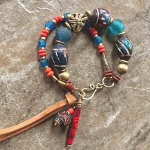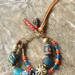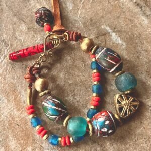 Tribal beads, also known as ethnic or trade beads, are commonly made from recycled and natural materials like bone, brass, clay, glass, resin, fabric, etc.