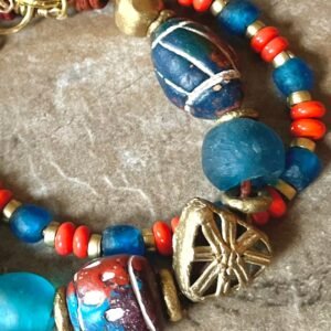 Tribal Boho Bracelet African Ethnic Clay, Recycled Glass and Brass Beads