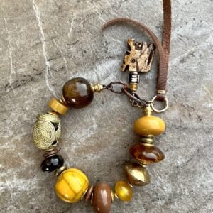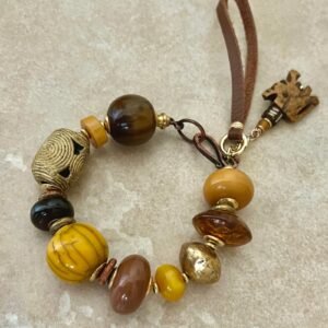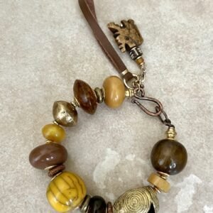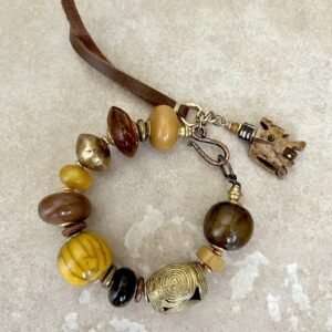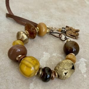 Tribal Boho Bracelet Vintage Resin and African Ethnic Lost Wax Brass Beads