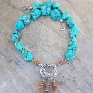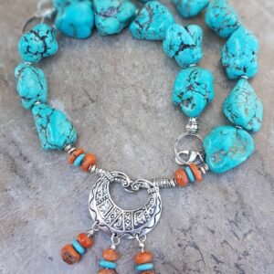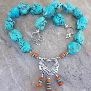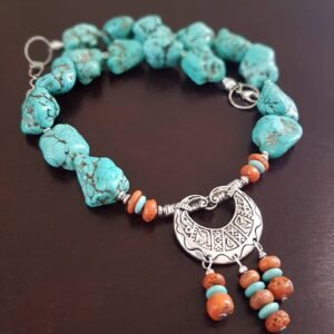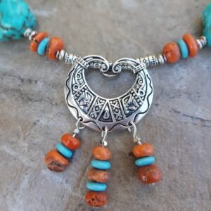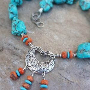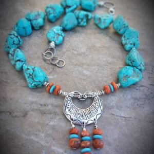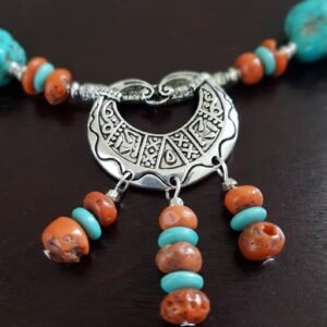 Tribal/Boho Chic Unisex Necklace Turquoise Howlite and Red Coral