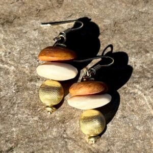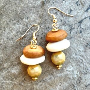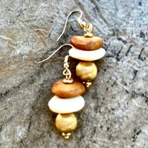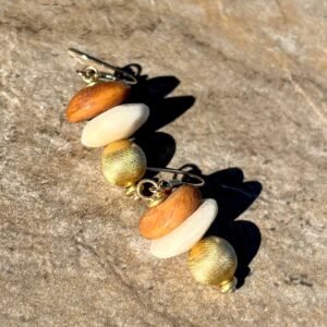 Tribal Boho Earrings African Trade Bone and Vintage Italian Gold Filled