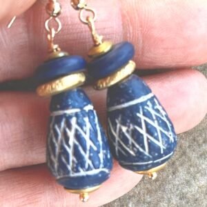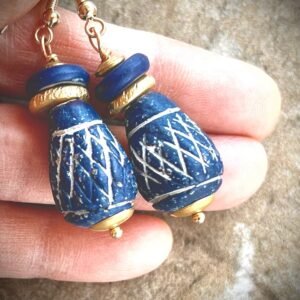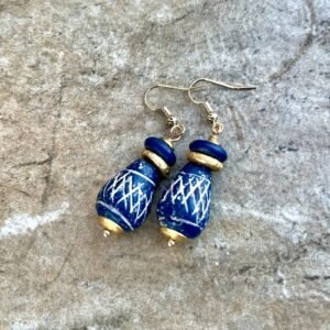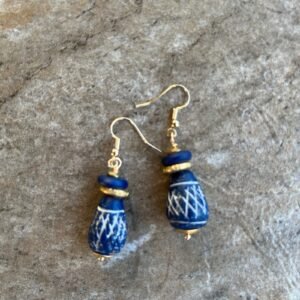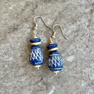 Tribal Boho Earrings Ethnic Clay, Bone and Brass African Beads