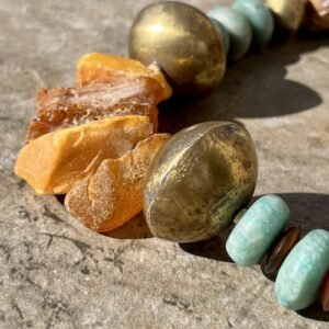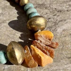 Tribal Boho Necklace Amazonite, Amber, Clay and African Brass