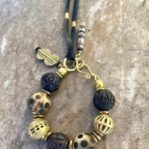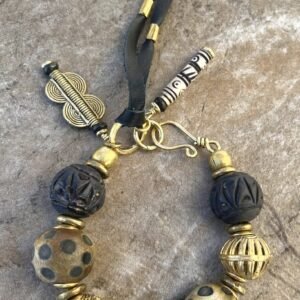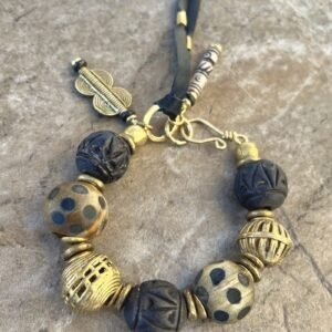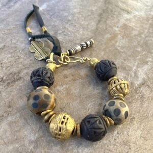 Tribal Bracelet Ethnic Clay, African Brass and Carved Horn Beads
