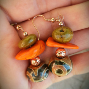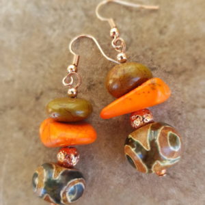 Tribal eyed agate, turquoise howlite and pyrite earrings